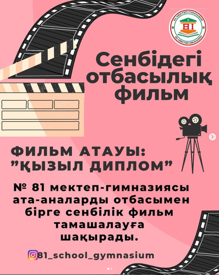 18 наурыз 2023 0 1 2 3 4 5 “Қызыл диплом” толықметражды қазақ фильмі "Сенбідегі отбасылық фильм" айдары аясында демалыс күндері отбасыларыңызбен бірге 2022 жылы түсірілген “Қызыл диплом” толықметражды қазақ фильмін тамашалауды ұсынамыз. https://www.instagram.com/p/CpnhQIbtp_4/?utm_source=ig_web_copy_link Осы беттің QR-коды:QR-код этой страницы: