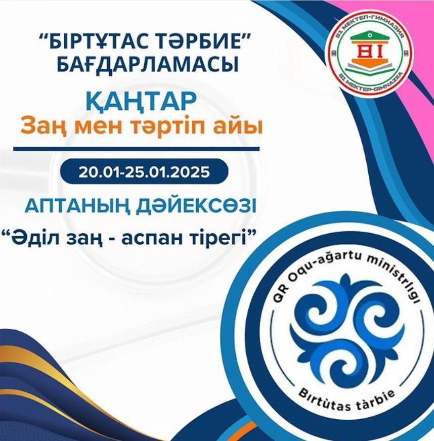 20 қаңтар 2025 0 1 2 3 4 5 Осы аптаның (20.01-25.01.2025) апталық дәйексөзі “Әділ заң - аспан тірегі” “Біртұтас тәрбие” бағдарламасы Желтоқсан айы - Заң мен тәртіп айы. Осы аптаның (20.01-25.01.2025) апталық дәйексөзі“Әділ заң - аспан тірегі”Жауапты: дтіжо: Усенова А.К. Осы беттің QR-коды:QR-код этой страницы: