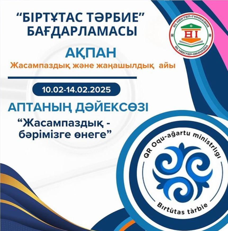 10 ақпан 2025 0 1 2 3 4 5 “Жасампаздық- бәрімізге өнеге” апталық дәйексөз “Біртұтас тәрбие” бағдарламасыАқпан айы - “Жасампаздық және жаңашылдық” айы.Осы аптаның (10.02-14.02.2025) апталық дәйексөзі“Жасампаздық- бәрімізге өнеге”Жауапты: дтіжо: Усенова А.К. Осы беттің QR-коды:QR-код этой страницы: