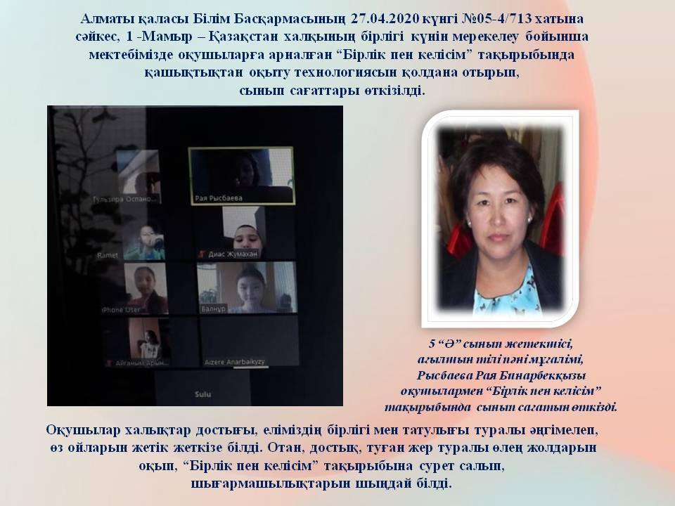28 сәуір 2020 100 1 2 3 4 5 "1-Мамыр – Қазақстан халқының бірлігі” күніне байланысты қашықтық сабағы. 5 "Ә" сыныбы Осы беттің QR-коды:QR-код этой страницы: