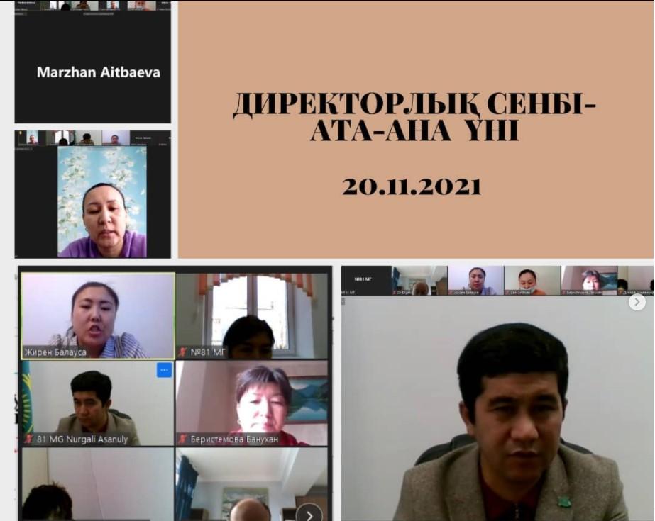 Алматы қаласы Білім басқармасының 06.10.2021 № 05-2/ 928 хаты негізінде 20.11.2021 күні, Бостандық ауданы № 81 мектеп-гимназиясында бекітілген кесте бойынша, сағат 12:00 -де 10 «А», 10 «Ә» сынып ата-аналарымен «Кәсіби бағдару беру және ҰБT-ға дайындықтарын бағдарлау» тақырыбында онлайн-кездесу өтті.