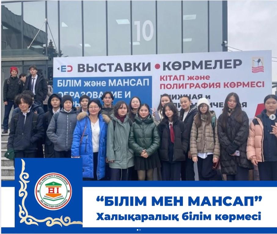Алматы қаласы Білім басқармасының ШЖҚ «Қалалық білім берудегі жаңа технологиялардың ғылыми-әдістемелік орталығы КММ» 11.11.2024 күнгі, №01.1-22\724 хаты негізінде 9 “А”сынып оқушылары 2024 жылдың 21 қарашасында Атакент-экспо-да Қазақстан-халықаралық ХХІІІ «Білім және мансап» білім көрмесіне 9-11 сынып оқушылары қатысып, тамашалап қайтты.