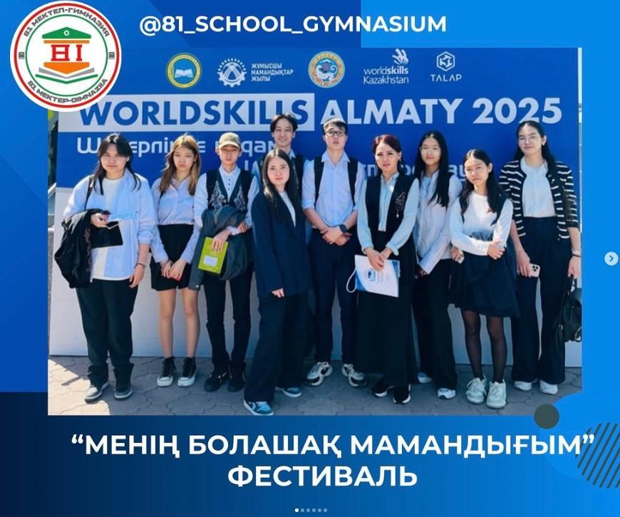 11.04.2025 күні, 9 “Б” сынып оқушылары “Атакент” демалыс орнында ұйымдастырылған “Менің болашақ мамандығым” тақырыбында өткен фестивальге қатысып келді. Жұмысшы мамандықтар жылына байланысты шарада оқушылар түрлі мамандықтың қыр-сырымен танысып, кәсіби бағдар алды.