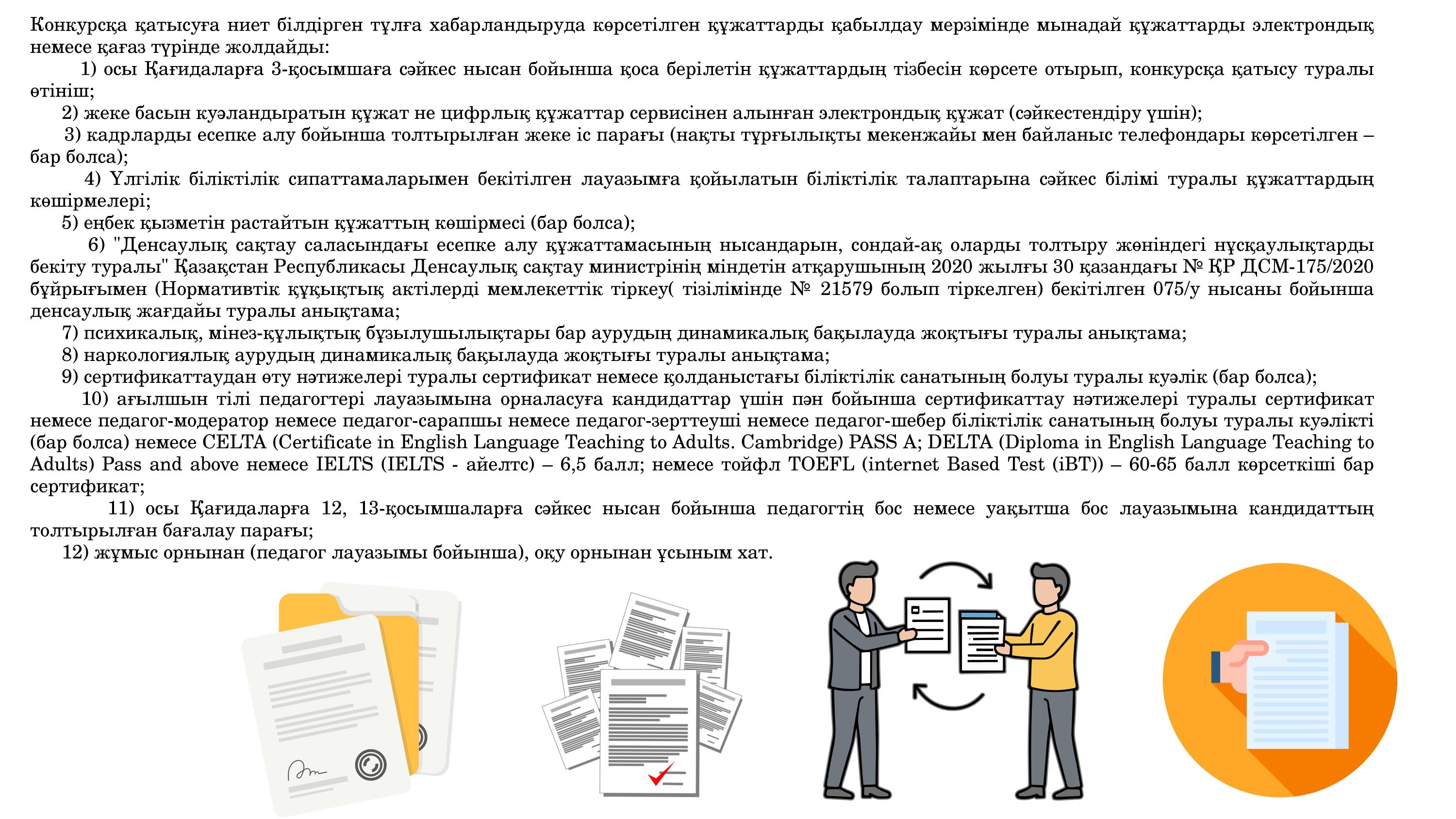 28 тамыз 2025 0 1 2 3 4 5 Бос лауазымға тағайындауға конкурс жариялайды! Бос лауазымға тағайындауға конкурс жариялайды! Осы беттің QR-коды:QR-код этой страницы: