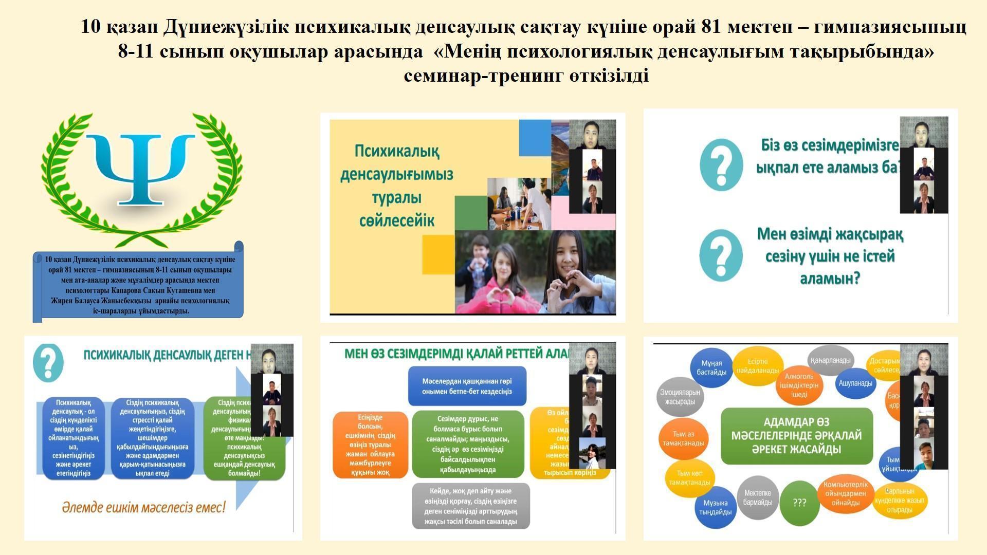"Менің психологиялық денсаулығым". Мектеп психологтары Капарова С.К. Жирен Б.Ж.