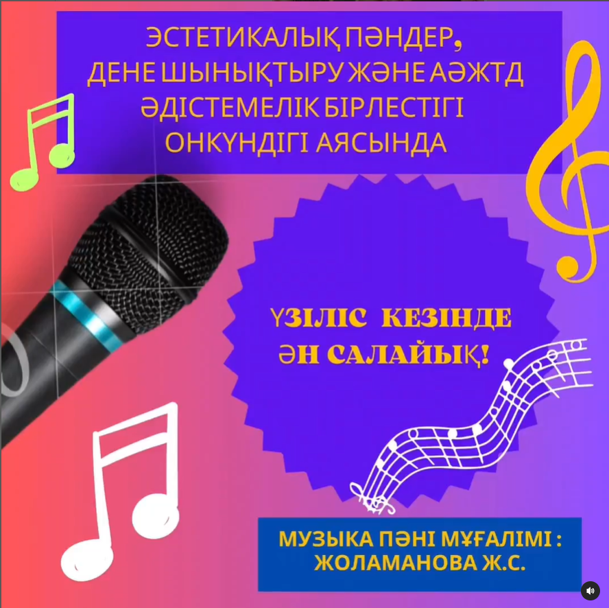 Эстетикалық пәндер, дене шынықтыру және АӘжТД әдістемелік бірлестігі онкүндігі аясында музыка пәні мұғалімі Ж.Жоламанова “Үзілісте ән салайық!” үзіліс кезіндегі сергіту сәтін ұйымдастырды.