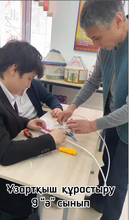 9 “ә” сыныбында физика және көркем еңбек пәндері тәрбие сағатымен кіріктіріліп өткізілді. Оқушылар бөлек бөлшектерден тұтас ұзартқыш құрастыруды үйренді. Бұл әрі пайдалы, әрі қажетті іс болды. Оқушылар физика пәніндегі алған білімдерін өмірде қолдана білуді үйренді. Кіріктірілген сабаққа сынып жетекшісі Садыкова Алия апай мен ата-аналары жақсы қолдау көрсетті.