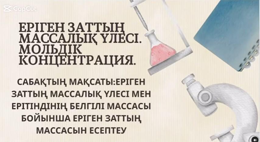 Биология,география және химия онкүндігі аясында 07.03.2025 күні химия пәнінен 8 “А” сыныбына ашық сабақ өтілді. Тақырыбы:еріген заттың массалық үлесі,мольдік концентрация.