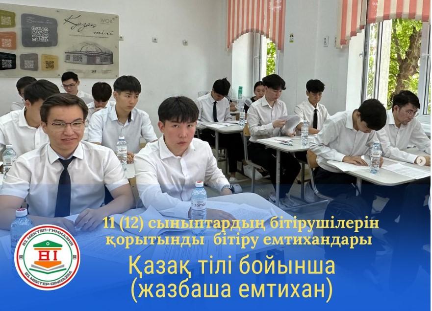 09.06.2025 күні, 11 (12) сыныптардың бітірушілерін қорытынды бітіру емтихандары. 11 “А” сыныбы қазақ тілі бойынша (жазбаша емтихан) тапсырды.