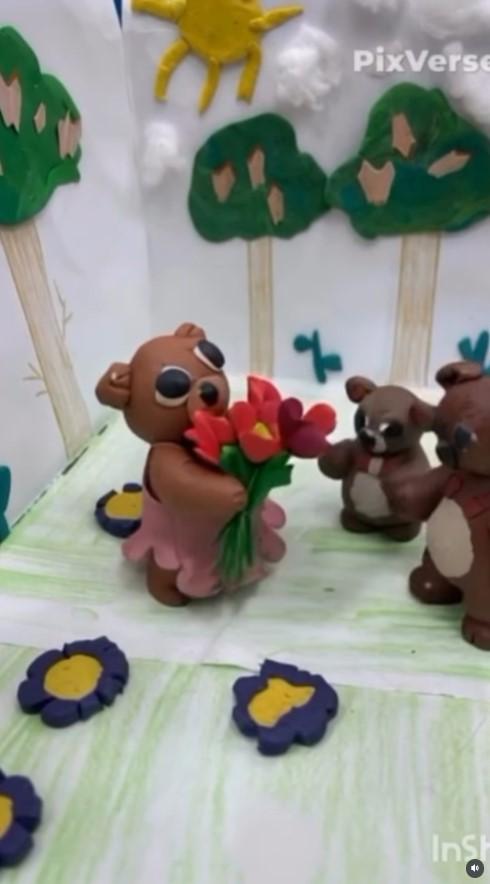 Ермексаздан жасалған кішкентай кейіпкерлерді ЖИ көмегімен қозғалту.