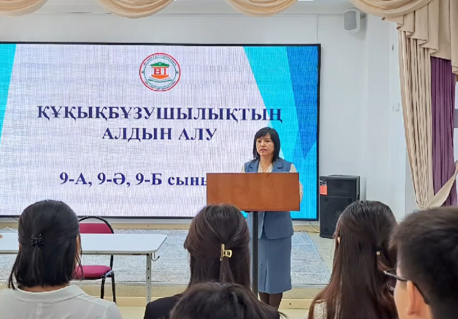 19.09.2023 күні , директордың тәрбие ісі жөніндегі орынбасары Жоламанова Жансая Садуакасовна 9 -сынып оқушыларымен құқықбұзушылықтың алдын алу мақсатында әңгіме жүргізілді.