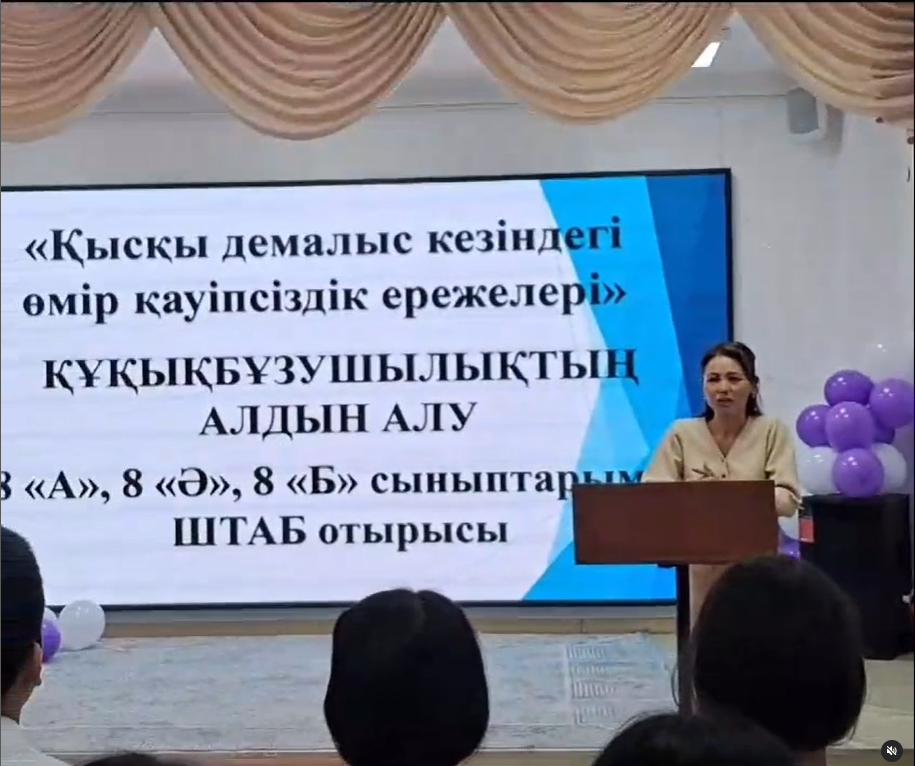Қысқы демалыс кезіндегі қауіпсіздік ережелері мен құқықбұзушылықтың алдын алу мақсатында 8-11 сыныптарында сынып жетекшілері профилактикалық әңгіме жүргізді.
