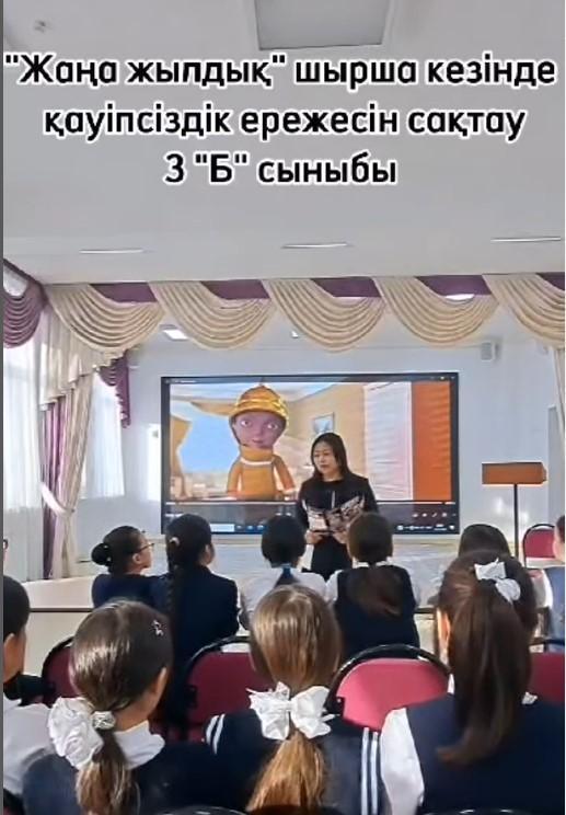 Директордың тәрбие ісі жөніндегі орынбасары Ж.Жоламанова «Жаңа жылдық» шырша кезіндегі оқушылардың өмір қауіпсіздігін сақтау шаралары бойынша бастауыш сынып оқушыларына шырша кезіндегі өрт қауіпсіздігі туралы түсіндіру жұмысын жүргізді. Пиротехникалық от шашулардың қауіпті екендігі айтылып, сынып жетекшілерімен бірге талқыланды.
