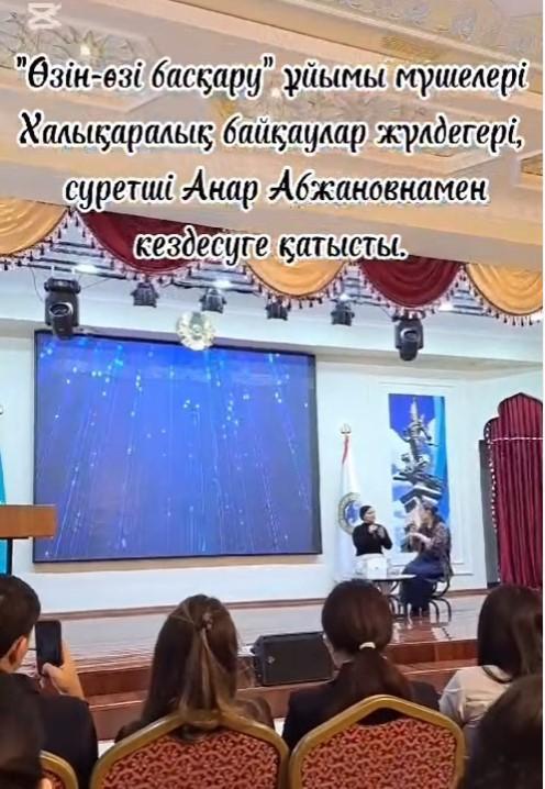 Өзін-өзі басқару ұйымы мүшелері халықаралық сурет байқауының жүлдегерімен кездесті. Жауапты: Дтіжо: Ж.Жоламанова https://www.instagram.com/reel/DFUyOF-O82t/?utm_source=ig_web_copy_link&igsh=MzRlODBiNWFlZA==