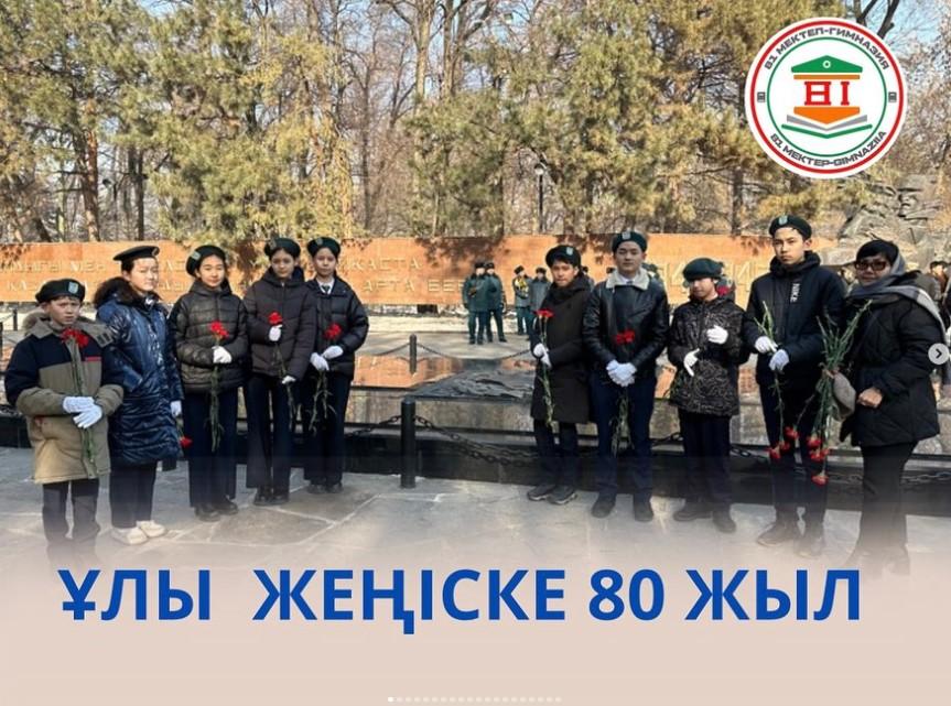 “ҰЛЫ ЖЕҢІС МҰРАГЕРЛЕРІ”жобасы аясында 11.02.2025 күні, Ұлы Жеңістің 80 жылдығына орай Алматыдағы 28 Гвардияшы Панфиловшылар саябағына соғыста қаза тапқан майдандастарды еске алып, гүл шоғын қою мақсатында Бостандық ауданы білім бөлімі ұйымдастырған “Ұлы Жеңістің мұрагерлері” іс шарасына АӘД мұғалімі Н. Қорғанбеков, мектеп әкімшілігі Д.Альпенова, А.Усенованың және “Жас сарбаз” ұйымының мүшелері сынып жетекшісі М.Алтаевамен бірге іс шараға белсенді қатысып, гүл шоғын қою рәсіміне қатысты. Даңқ мемориалы – 28 панфиловшылар саябағында 1975 жылы орнатылған ескерткіш-кешен.