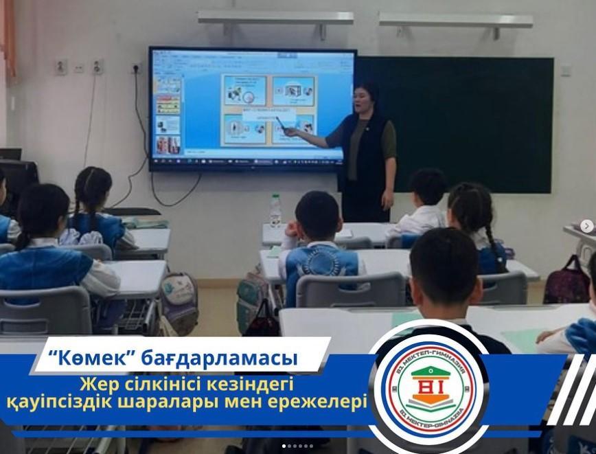17.02.2025 ж “Қөмек бағдарламасы” аясында қауіпсіздік минутында оқушылардың өмір қауіпсіздігін алдын алу мақсатында “Жер сілкінісі кезіндегі әрекеттер” тақырыбында сынып сағаты өтті.