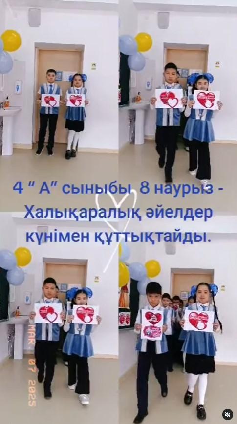 8 наурыз -Әйелдер мерекесіне арналған 4 “А” сыныбының мерекелік құттықтауы