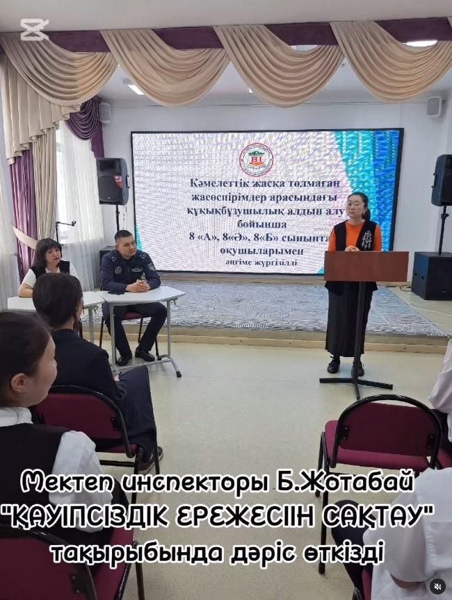 Бүгінде көше бойында мопед немесе электросамокат айдап жүрген балаларды көптеп көзіміз шалады. Дегенмен атаулы көлік тізгініндегі кішкентай балаларды көріп «байқап жүрсе екен» дейсің де, жандарынан өтіп кете береміз. Жалпы мұндай көлік түрін тізгіндеген балалар жол ережесін біледі ме? Бұл тұрғыда заң не дейді? Мұндай құрылғыны айдағанына риза болған бала оқыс оқиғаға тап болып қалмасына кім кепіл?!-деген сауалға мектеп инспекторы Б.Жотабай айтып түсіндірді. Ұйымдастырушы ДТІЖО: Ж.Жоламанова