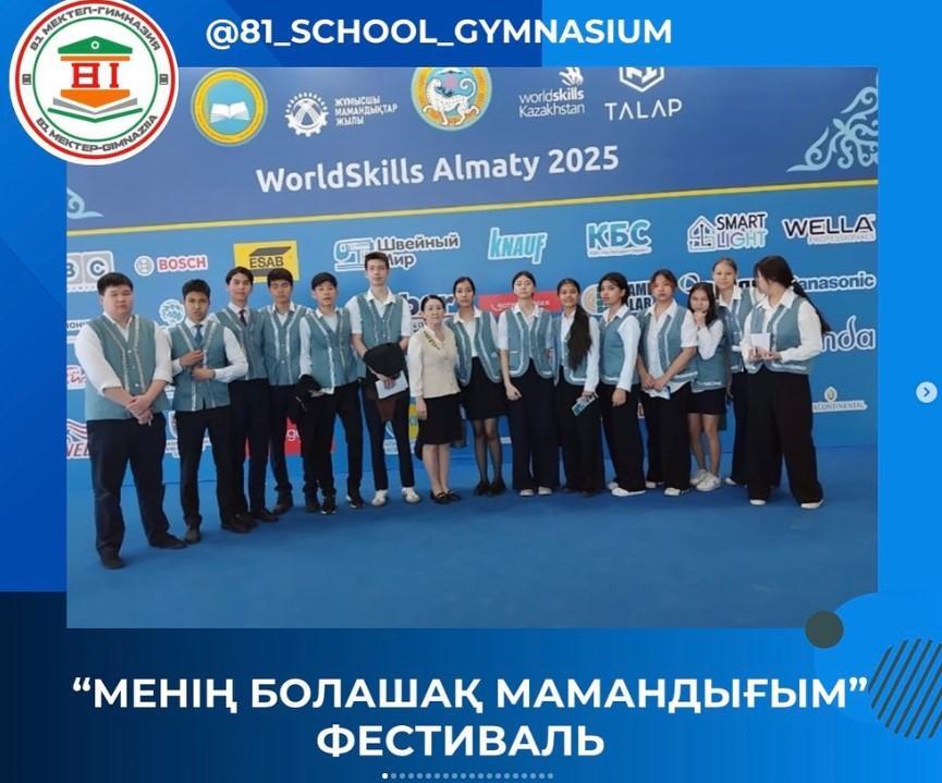 11.04.2025 күні, 9-10 сынып оқушылары “Атакент” демалыс орнында ұйымдастырылған “Менің болашақ мамандығым” тақырыбында өткен фестивальге қатысып келді. Жұмысшы мамандықтар жылына байланысты шарада оқушылар түрлі мамандықтың қыр-сырымен танысып, кәсіби бағдар алып қайтты. Оқушылармен бірге мектеп директоры Н.Садыкова және сынып жетекшісі Л.Нургалиева қатысты.