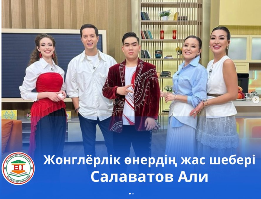 Мектебіміздің мақтанышы, жас талант, цирк өнерінің майталманы, жонглёрлік өнердің жас шебері Салаватов Алидің телеарнаға сұхбатынан