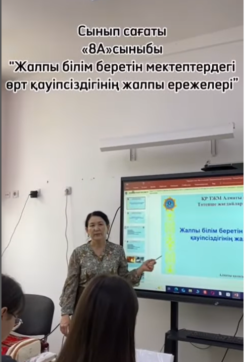 21.04.2025 ж. Қауіпсіздік минуты. Оқушылардың өмір қауіпсіздігін алдын алу мақсатында “Өрт кезіндегі тәртіп ережелері” тақырыбында 8 “,А” сыныбында сынып сағаты өтті.