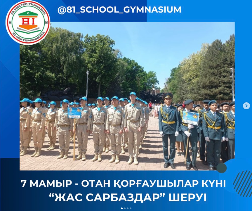 07.05.2025 күні, 7 мамыр -Отан қорүаушылар күніне орай 28 Панфиловшы-гвардияшылар саябағында мерекелік шара, шеру өтті. Шеруге мектебіміздің “Жас сарбаздары” саптық жаттығу көрсетіп, шеруге белсенді қатысты. Жас Отан қорғашыларымызға алғыс білдіреміз.