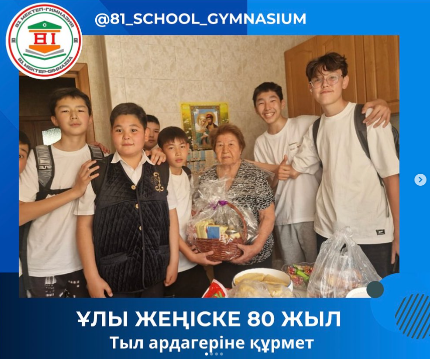 Ұлы Жеңістің 80 жылдығына орай тыл ардагерлерін оқушыларымыз мерекесімен құттықтап, құрмет көрсетті. Ардагерлердің естелік әңгімесін тыңдап, оқушыларымыз ардагерлерге бейбіт өмір сыйлағаны үшін алғыстарын білдірді.