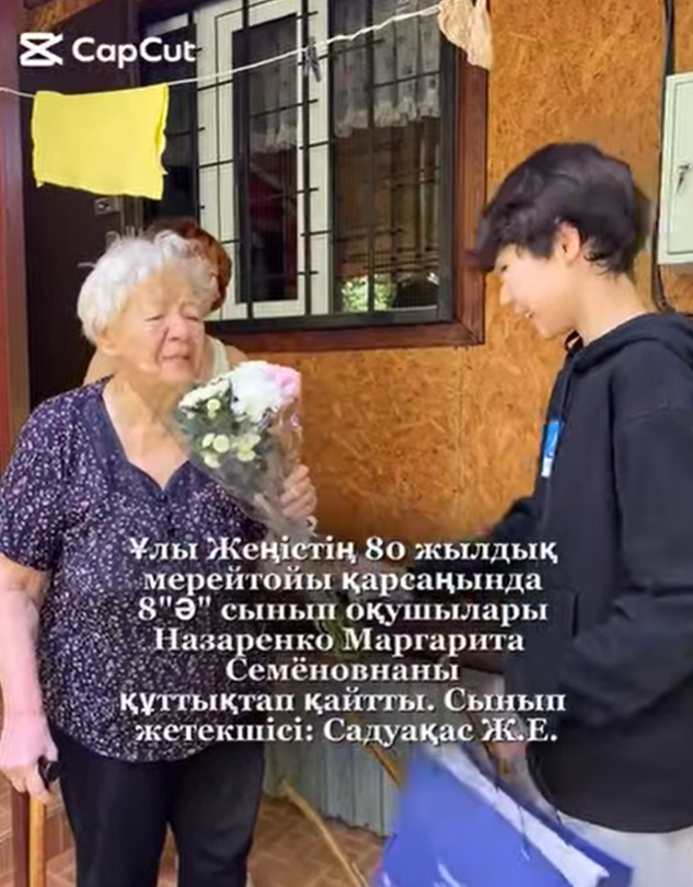 Ұлы Жеңістің 80 жылдығына орай тыл ардагерлерін оқушыларымыз мерекесімен құттықтап, құрмет көрсетті