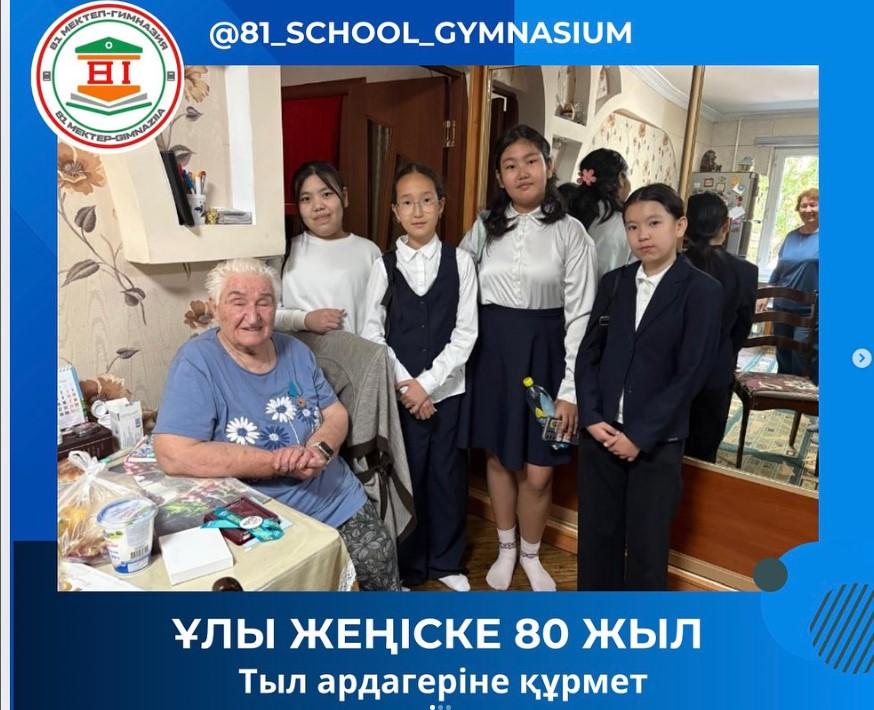 Жеңістің 80 жылдығына орай тыл ардагерлерін оқушыларымыз мерекесімен құттықтап, құрмет көрсетті. Ардагерлердің естелік әңгімесін тыңдап, оқушыларымыз ардагерлерге бейбіт өмір сыйлағаны үшін алғыстарын білдірді.