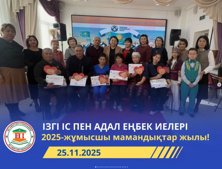 25.11.2025 күні, 2025- жұмысшы - жұмысшы мамандықтар жылына байланысты “Адал азамат” біртұтас тәрбие бағдарламасы аясындағы “Қамқор” жобасы бойынша “Адал адам-адал еңбек” тақырыбында өткен мерекелік кеште қызметкерлерімізге құрмет көрсетілді, Мектеп директоры Н.Садыкова құрмет грамотасын табыстап, қызметкерлерді құттықтады.