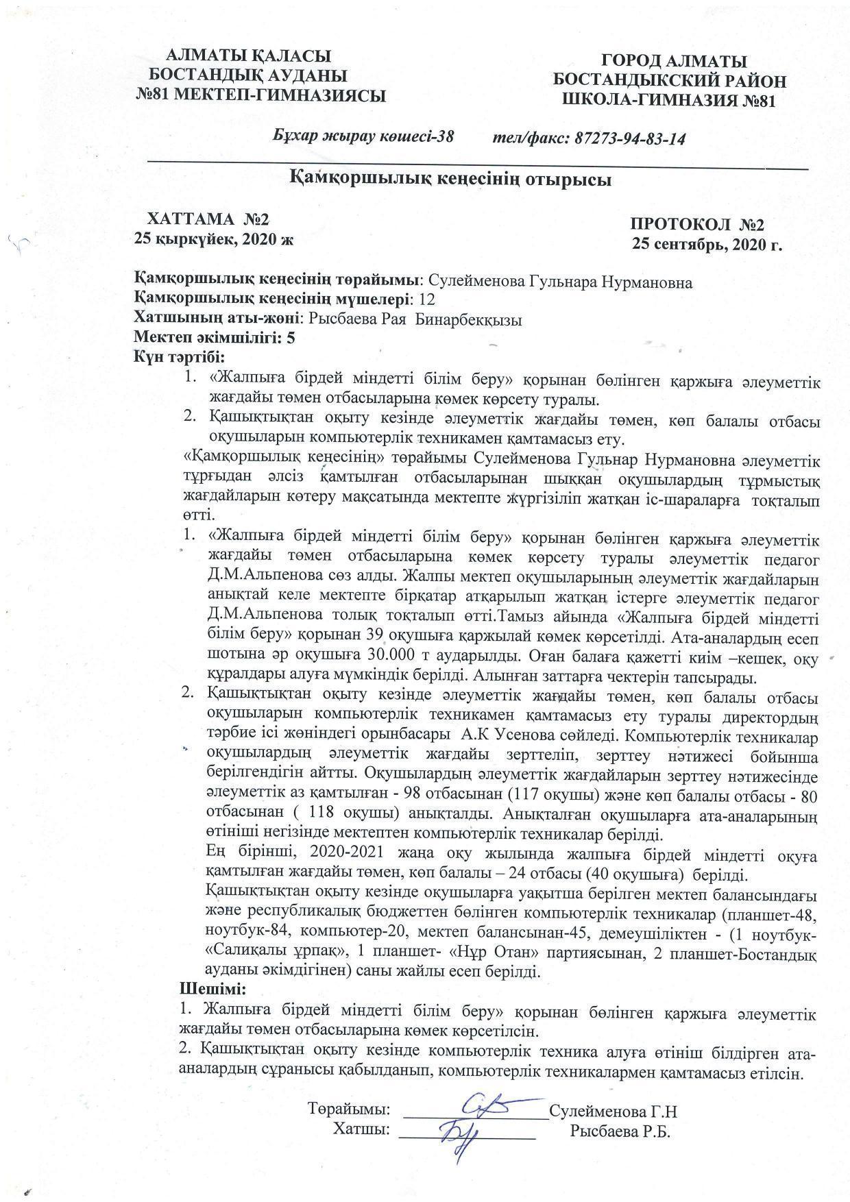 25 қыркүйек 2020 0 1 2 3 4 5 "Қамқоршылық кеңес" отырысының хаттамасы №2 Осы беттің QR-коды:QR-код этой страницы: