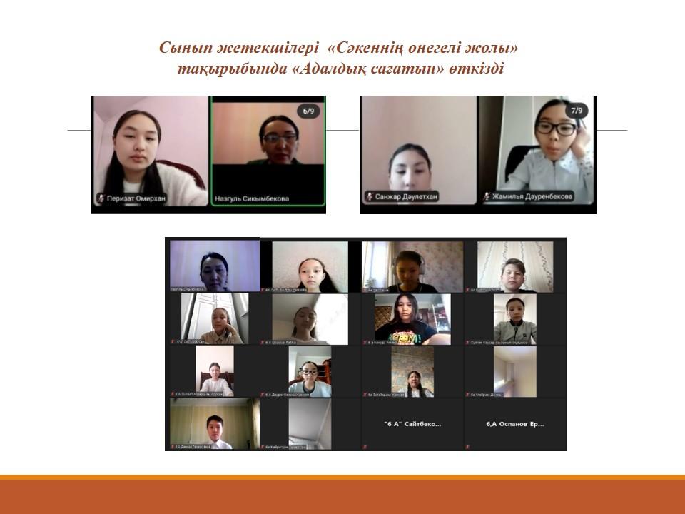№81 мектеп-гимназиясында Сыбайлас жемқорлыққа қарсы іс-қимыл агенттігінің «Сәкеннің өнегелі жолы» тақырыбында өмірі мен шығармашылығы әділдік пен адалдық қағидаларымен ұштасқан Сәкен Сейфуллиннің рухани-адамгершілік мұрасына арналған дәстүрлі онлайн адалдық сағаты өтті.