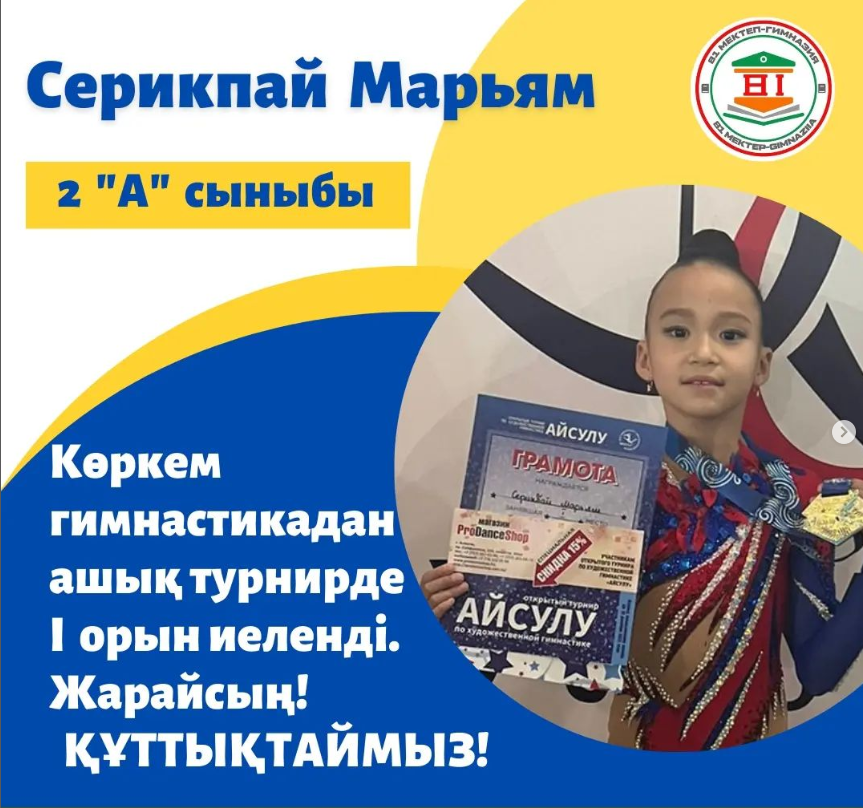 21 қараша 2022 0 1 2 3 4 5 Көркем гимнастикадан ашық турнирдің жеңімпазы Көркем гимнастикадан ашық турнирде 2 "А" сынып оқушысы Серикбай Марьям І орын иеленді. Жарайсың, Марьям! Құттықтаймыз.👍🏆 https://www.instagram.com/p/CleOrO0N4Ex/?utm_source=ig_web_copy_link Осы беттің QR-коды:QR-код этой страницы: