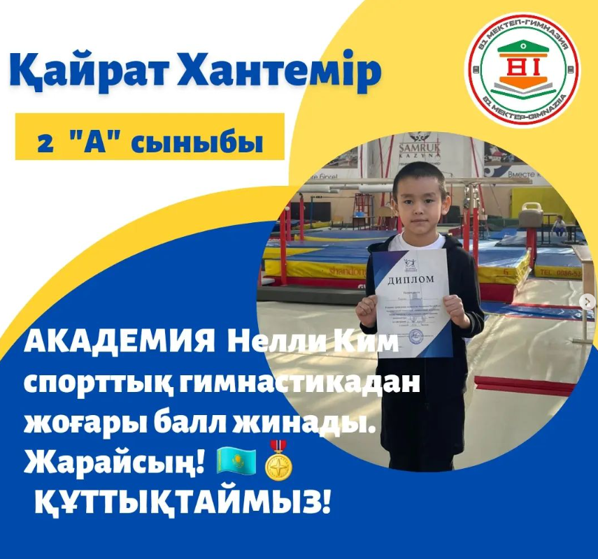 спорттық гимнастика жарысында жоғары ұпай жинап жеңіске жетті. Жарайсың, Хантемір!🏆🏆