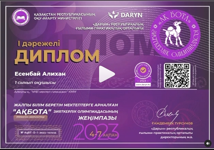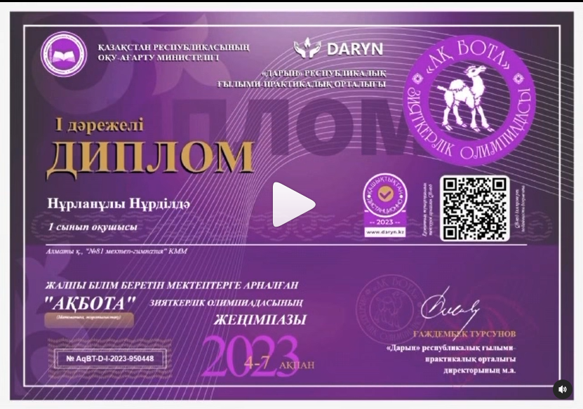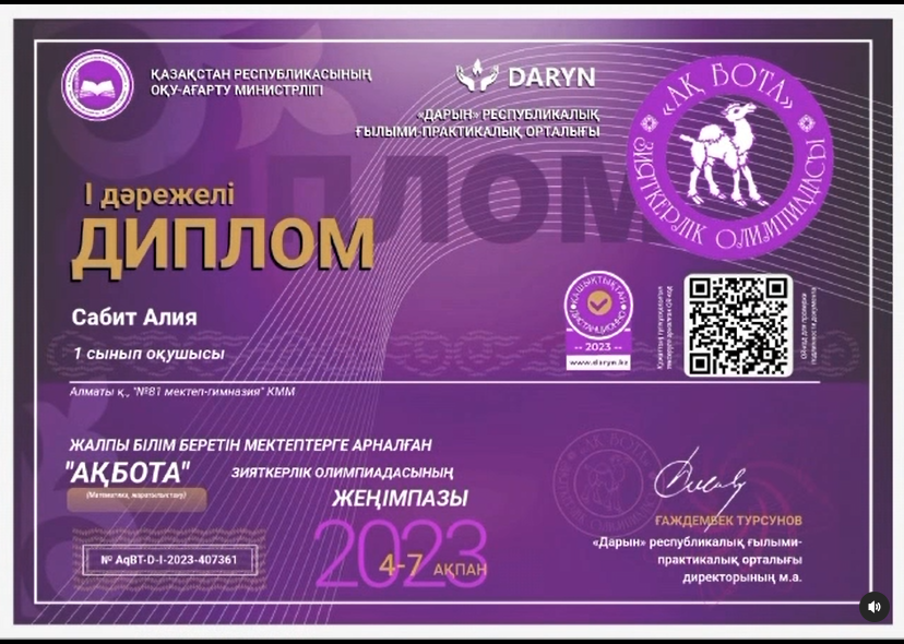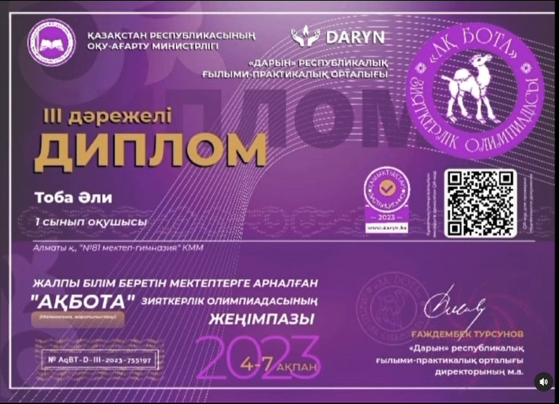 “АҚБОТА” зияткерлік олимпиадаға қатысып, жүлделі орын алған 1 “В” сыныбы жеңімпаздарын жеңістерімен құттықтаймыз! Жарайсыздар!👏👍🥇🏆