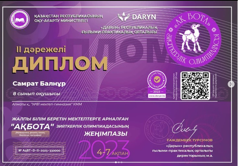 “АҚБОТА” зияткерлік олимпиадаға қатысып, химия пәнінен жүлделі оқушыларымызды жеңісімен құттықтаймыз! Жарайсыздар!👏👍🥇🏆