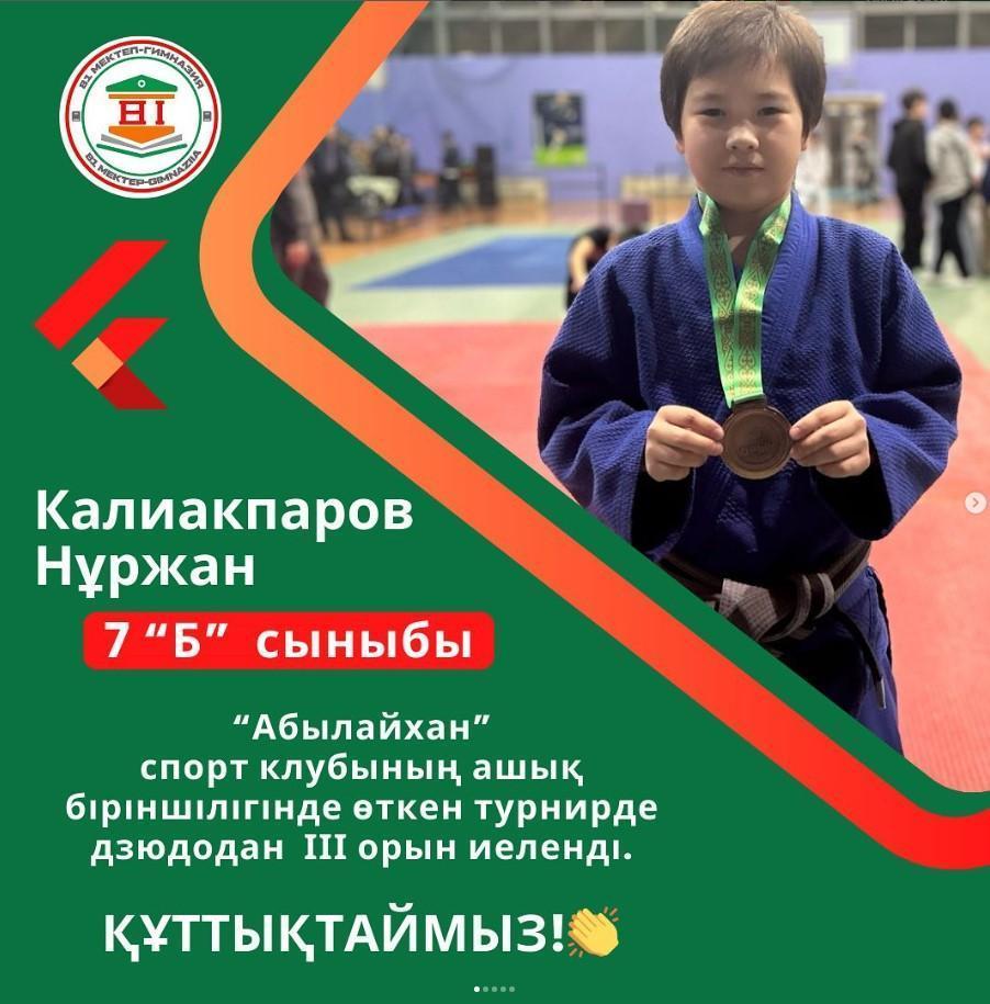 “Абылайхан” спорт клубының ашық біріншілігінде өткен турнирде 7 “Б” сынып оқушысы Калиакпаров Нұржан ІІІ орын иеленді. Жарайсың, құттықтаймыз! https://www.instagram.com/p/C3NzUQCiPkR/?utm_source=ig_web_copy_link&igsh=MzRlODBiNWFlZA==