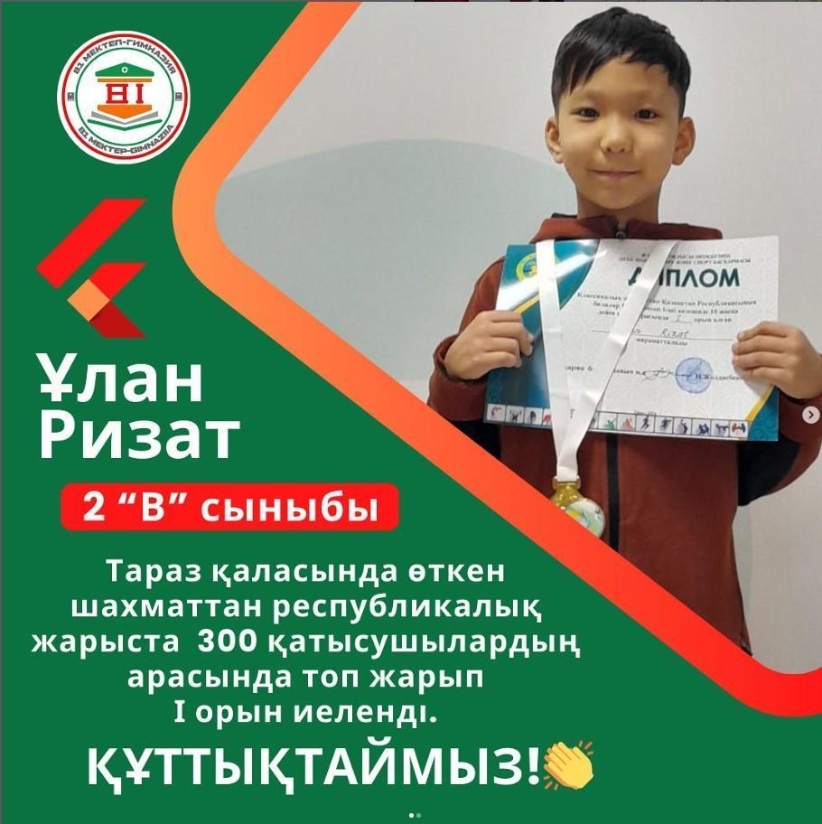 Тараз қаласында өткен шахматтан республикалық жарыста 300 қатысушылардың арасында топ жарып, 2 “В” сынып оқушысы