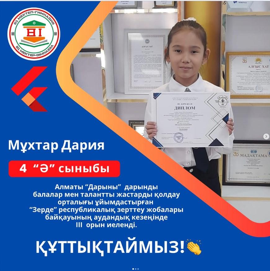 “Дарыны” дарынды балалар мен талантты жастарды қолдау орталығы ұйымдастырған “Зерде” республикалық зерттеу жобалары