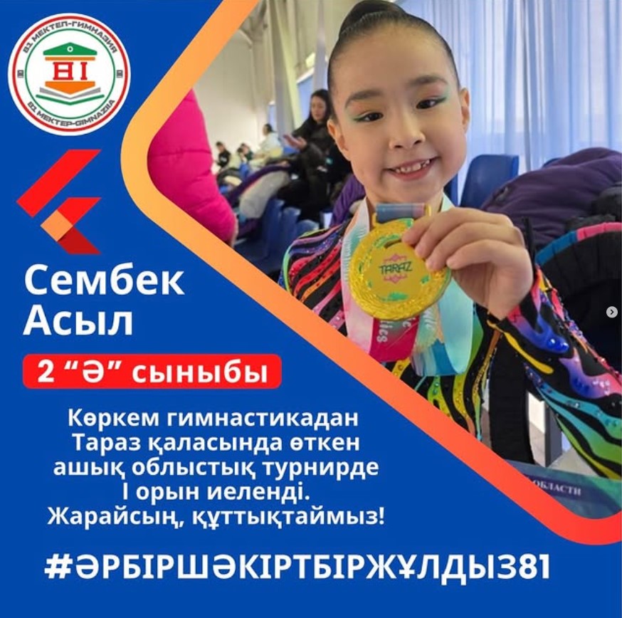 Көркем гимнастикадан Тараз қаласында өткен ашық облыстық турнирде 2 “Ә” сынып оқушысы Сембек Аяла І орын иеленді.