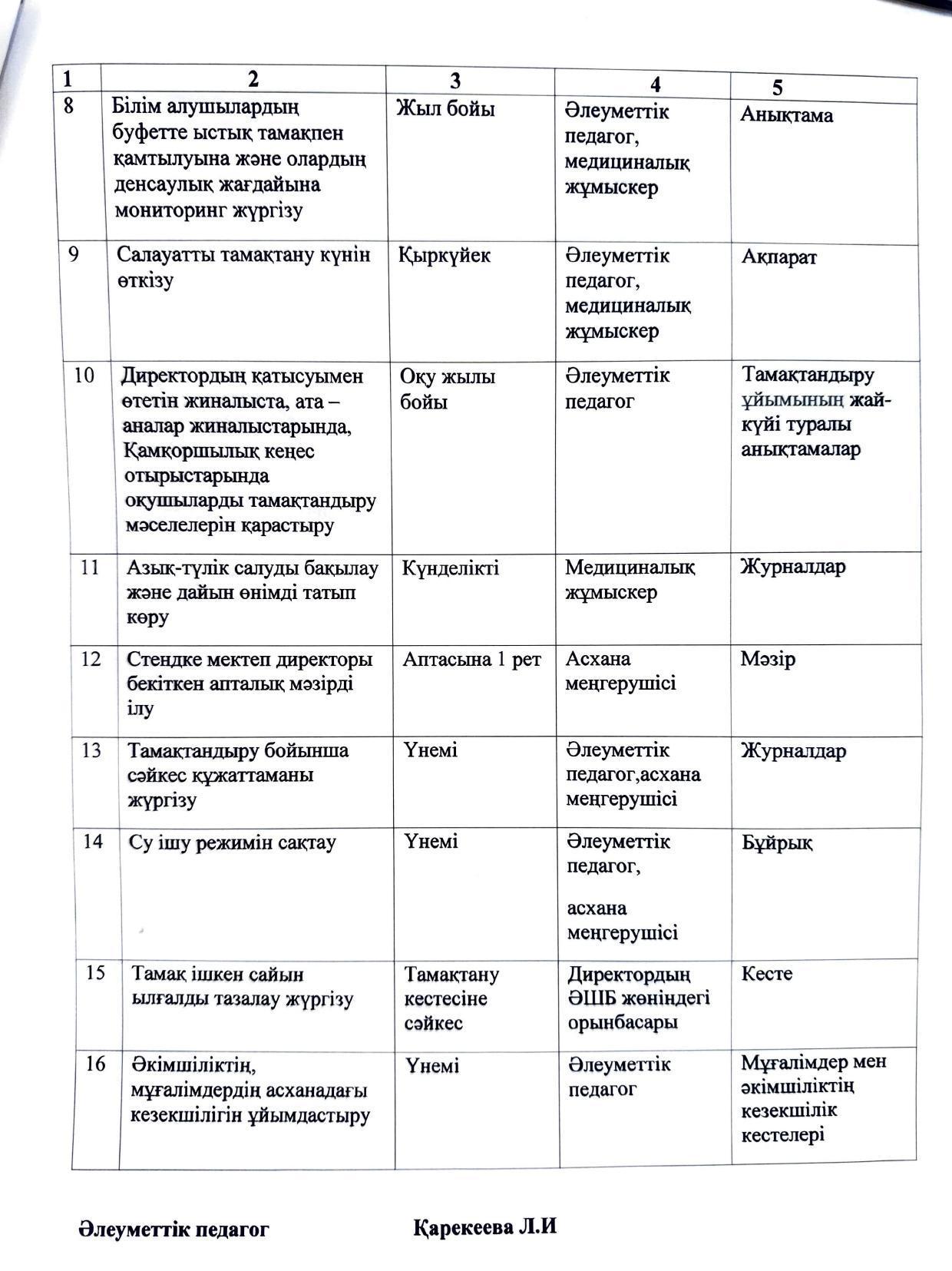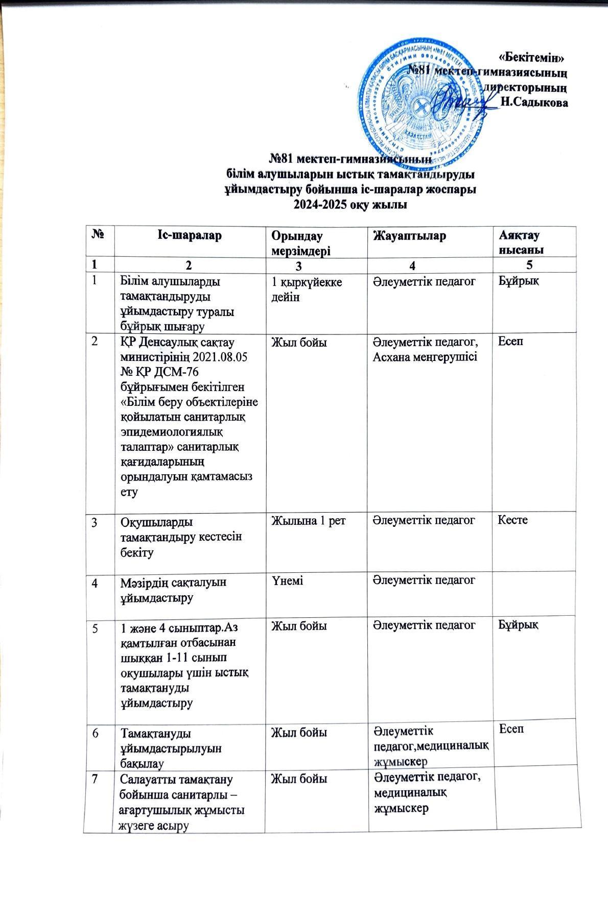 Білім алушыларды ыстық тамақпен тамақтандыруды ұйымдастырудың жылдық жоспары. 2024-2025 оқу жылы